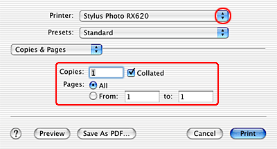 The Copies & Pages settings available are a standard feature of Mac OS X. See your operating system's documentation for details.