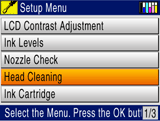 Confirm the messages on the LCD panel, then press the OK button to start Head cleaning.