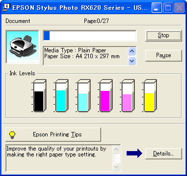 The progress meter dialog box appears automatically when you send a print job to this product. You can check the remaining amount of ink from this dialog box.