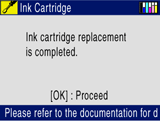 button, then press the OK button. Confirm the messages on the LCD panel and press the OK button to start the ink cartridge replacement.