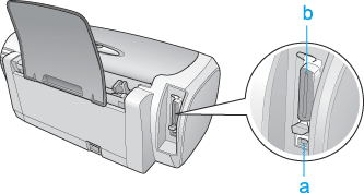 b. Conector paralelo: Conecta el cable paralelo del ordenador a la impresora.