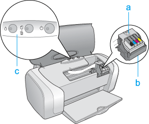 a.Cubierta del cartucho: Sujeta los cartuchos de tinta. Ábrala sólo para instalar o sustituir los cartuchos de tinta.