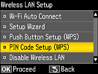 PIN Code Setup (WPS) (Config códg PIN (WPS)) y pulse