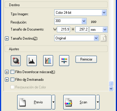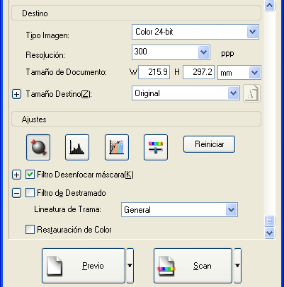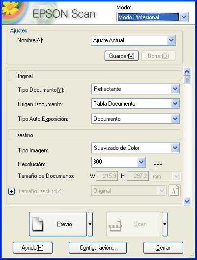 ![]() | Inicie EPSON Scan y seleccione el modo Profesional. Si desea más instrucciones sobre cómo seleccionar un modo de escaneado, consulte Cambio del modo de escaneado. |