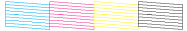 Si la página de prueba no se imprime correctamente, significa que hay un problema en este producto. Por ejemplo: si aparecen bandas en el patrón de revisión como se muestra más abajo, puede que uno de los inyectores de tinta esté obstruido o que el cabezal de impresión esté desalineado. En el apartado "Limpieza del cabezal de impresión" del Manual de funcionamiento básico encontrará las instrucciones para limpiar el cabezal de impresión.