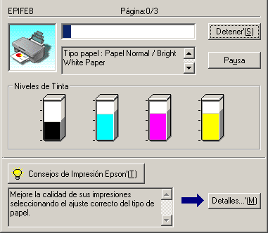 Se puede cancelar la impresión tanto a través del Contador de avance como de EPSON Spool Manager. Consulte la sección correspondiente más abajo.