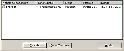 EPSON Spool Manager es parecido al Administrador de impresión de Windows. Si recibe dos o más trabajos de impresión a la vez, los coloca en una cola (con impresoras en red, la llamada cola de impresión) según el orden de llegada. Cuando un trabajo de impresión llega al principio de la cola, EPSON Spool Manager lo envía a la impresora. Puede cancelar trabajos de impresión desde Spool Manager. También puede ver información sobre el estado de la impresión de los trabajos enviados a este producto, así como hacer una pausa o reanudar los trabajos de impresión seleccionados.