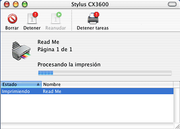 Después de enviar un trabajo de impresión, en la barra de tareas aparecerá el botón EPSON Stylus CX3600 Series. Haga clic en ese botón para abrir EPSON Spool Manager.