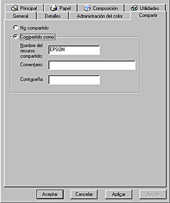 Seleccione Compartida como, y escriba un nombre para la impresora compartida.