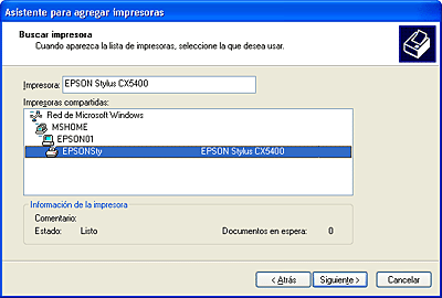 Según cuál sea el sistema operativo y la configuración del ordenador al que está conectado este producto, es posible que el Asistente para agregar impresora le pida que instale el controlador de la impresora desde el CD-ROM del software de la impresora. En ese caso, haga clic en el botón Utilizar disco y siga las instrucciones que aparezcan por pantalla.