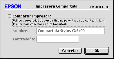 Utilice el ajuste Compartir impresora, una función estándar de Mac OS X 10.2 y posteriores. Esta función no está disponible en Mac OS X 10.1.