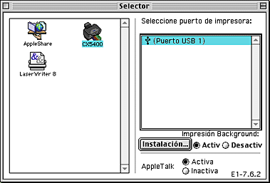 Elija la opción Selector del menú Apple. Haga clic en un icono de este producto y seleccione el puerto de impresora que desee utilizar en la lista Seleccione puerto de impresora.