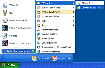 Haga clic en Inicio, señale Todos los programas (o Programas). Señale EPSON Scan y haga clic en Ayuda de EPSON Scan.
