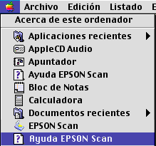 Haga clic en el menú Apple y señale Ayuda de EPSON Scan.