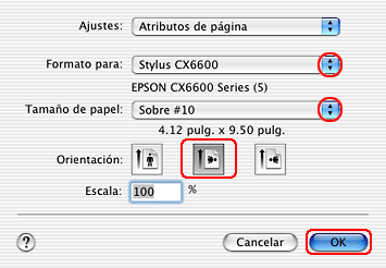 Seleccione el tamaño de sobre adecuado en Tamaño papel.