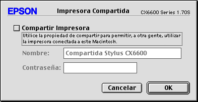 Utilice el ajuste Compartir impresora, una función estándar de Mac OS X 10.2 y posteriores.