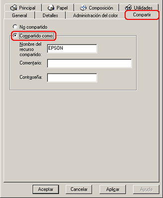 Si desea compartir este producto con otros ordenadores a través de una red, siga estos pasos para configurar el ordenador directamente conectado a este producto.