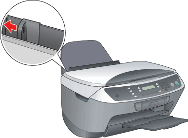 Deslice la guía lateral izquierda hacia la izquierda de forma que la distancia entre las dos guías laterales sea algo superior al ancho del papel.