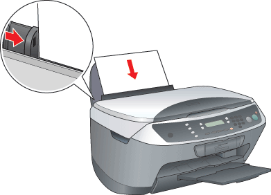 Coloque papel en el alimentador cara arriba, y con el extremo superior abajo. Mueva la guía lateral para adaptarla a la anchura del papel.