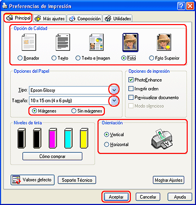 Haga clic en Aceptar para cerrar la ventana de los ajustes de la impresora.