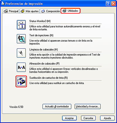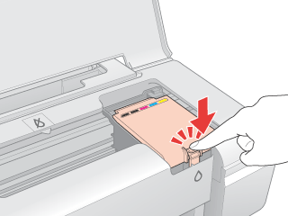 La impresora moverá el cabezal y comenzará a cargar el sistema de alimentación de tinta. Este proceso tarda alrededor de minuto y medio. Terminado el proceso de carga de tinta, el cabezal de impresión volverá a su posición de reposo. El indicador de encendido
