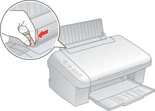 Cargue el papel con la cara imprimible hacia arriba, junto al lado derecho del alimentador de hojas. A continuación, deslice la guía lateral izquierda hasta tocar el borde izquierdo del papel, pero sin apretarla demasiado.