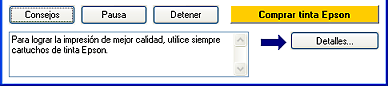 En el cuadro de texto de la ventana del contador de avance, aparecen consejos para aprovechar al máximo el controlador de impresora Epson. Cada 30 segundos se muestra un consejo nuevo. Si desea saber más sobre la sugerencia que aparece en pantalla, haga clic en el botón Detalles.