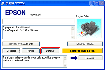 Haga clic en el botón Detener para cancelar la impresión.