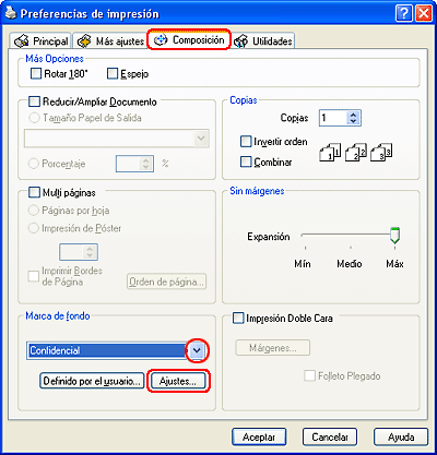 Impresión de marcas de fondo (solamente en Windows)