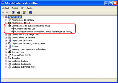 ![]() Si figuran en la lista una Controlador de host universal PCI a USB y el Concentrador raíz USB, es que Windows es compatible con USB.