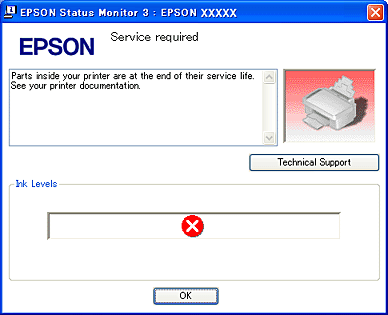 ![]() Mensajes de errorSi surge algún problema durante la impresión, aparecerá un mensaje de error en el cuadro de texto de la ventana del contador de avance. Si desea más información, haga clic en Technical Support (Soporte Técnico) para acceder al Manual de usuario on-line.