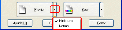 Puede seleccionar el método de previsualización: de miniaturas o normal. Haga clic en la flechita situada a la derecha del botón Previo y seleccione Miniatura o Normal.