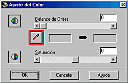 En el cuadro de diálogo Ajuste del color, haga clic en el botón del  cuentagotas situado bajo Balance de grises.