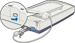 Conecte el conector del adaptador de transparencias al conector de opción del escáner.