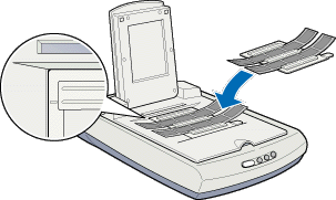 ) le permite escanear negativos de rollos de películas y diapositivas sólo con instalar la unidad en el escáner. El adaptador de transparencias es compacto, por lo que puede colocarse y extraerse con facilidad cuando alterne el escaneado de materiales transparentes y de documentos reflectantes normales (papel).