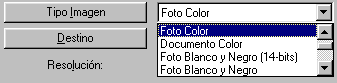 Cuando el ajuste Origen documento está configurado como TPU: Negativo Monocromo, o si está activada la previsualización de miniaturas, las únicas opciones disponibles en la lista Tipo de imagen serán Foto Color y Foto Blanco y Negro.