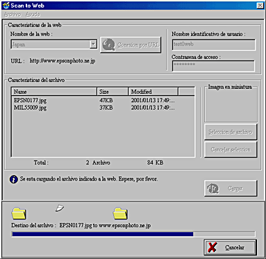 ![]() | Aparecerá una barra de progreso y la imagen escaneada se cargará en el sitio Web para compartir fotografías de EPSON. |