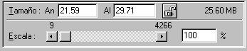 El porcentaje de ampliación o reducción se muestra en el campo indicador de Escala. Puede escribir un valor nuevo directamente en este campo, o utilizar el control deslizante Escala para determinar el valor.