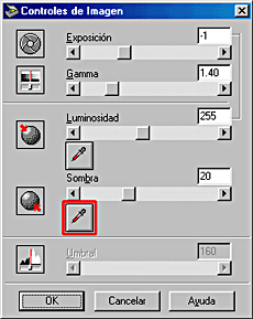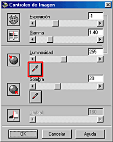 En el cuadro de diálogo Controles de imagen, haga clic en el botón del cuentagotas situado debajo de Luminosidad.
