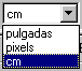 Seleccione una unidad de medida. Puede seleccionar pulgadas, píxeles o cm.