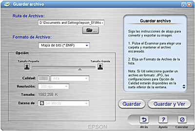 Aplicaciones de la ventana EPSON Smart Panel