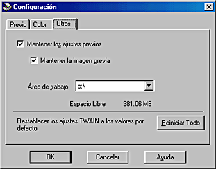 Haga clic en este botón si desea inicializar todos los ajustes de TWAIN y recuperar la configuración predeterminada de fábrica.