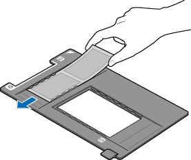 Si desea sacar un soporte para películas de la superficie para documentos, deslícelo hacia la derecha o hacia la izquierda y luego extráigalo de la superficie.