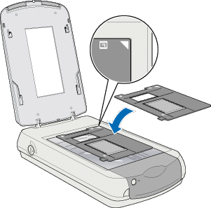 Cargue la transparencia en el soporte para películas y colóquelo en la superficie para documentos del escáner. Consulte las siguientes secciones para conocer más detalles sobre los siguientes tipos de transparencias y luego vaya al paso 5.