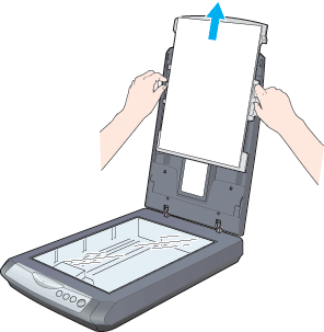 Abra la cubierta para documentos y deslice el soporte para documentos reflectantes hacia arriba con cuidado para sacarlo.