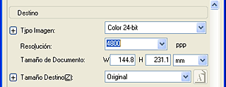 Si escanea una película de 35 mm y aumenta la imagen escaneada al tamaño A2, seleccione 4800 en la lista Resolución para obtener una textura de alta calidad.