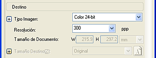 ![]() | Especifique el tipo de archivo de imagen resultante deseado con los ajustes de Destino. |