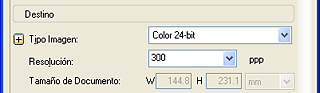 ![]() | Especifique el tipo de archivo de imagen resultante deseado con los ajustes de Destino. |
