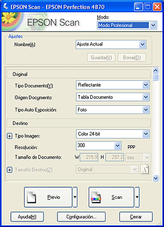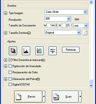 ![]() | Inicie EPSON Scan y seleccione el modo Profesional. Si desea más instrucciones sobre cómo seleccionar el modo de escaneado, consulte Cambiar el modo de escaneado. |