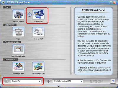 Pulse el botón Iniciar del escáner. Aparecerá la ventana de EPSON Smart Panel.